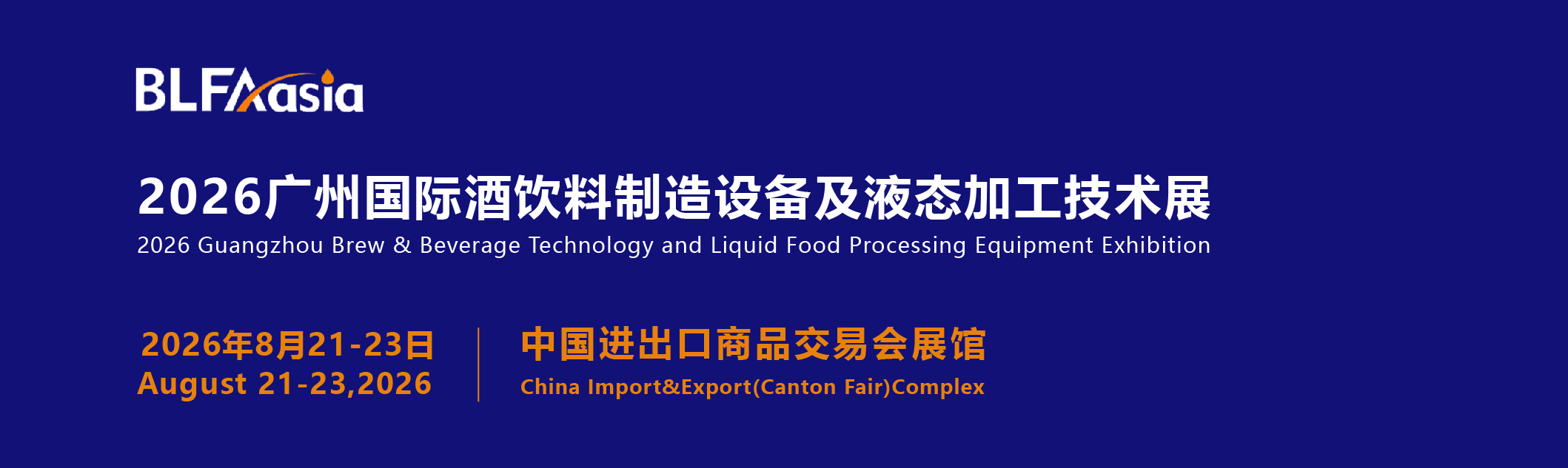BLFAasia-2026GUANGZHOU Brew&Beverage Technology and Liquid Food Processing Equipment Exhibition(for short : BLFAasia2026 ) will be held in the core city of Greater Bay Area on August 21-23,2026 at the same time with FPackAsia,which focus on liquid food processing and packing industry such as alcoholic, soft drink ,milk drink, condiments . The exhibition will Be expected to attract visitors from more than 30 countries and regions .